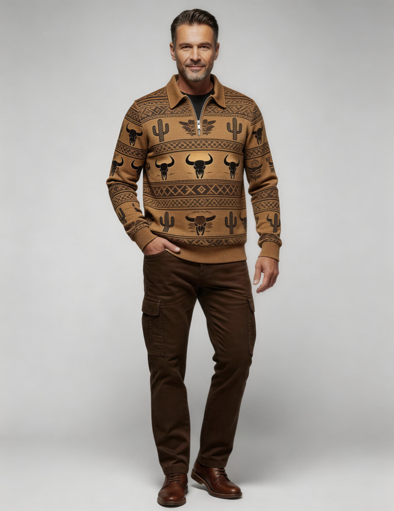 Men's Half Zip Jacquard Collar Sweatshirt